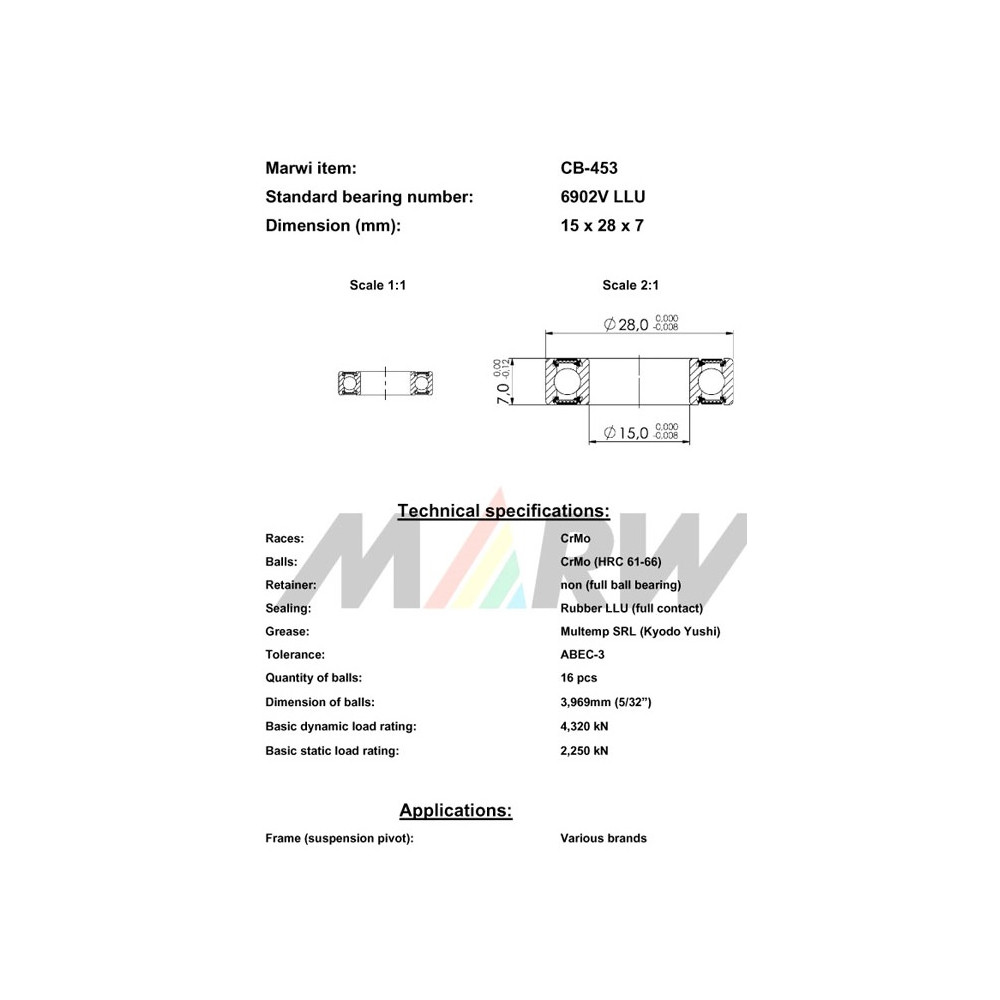 Ložisko CB-453 6902V LLL, 15x28x7 do náboja, ks