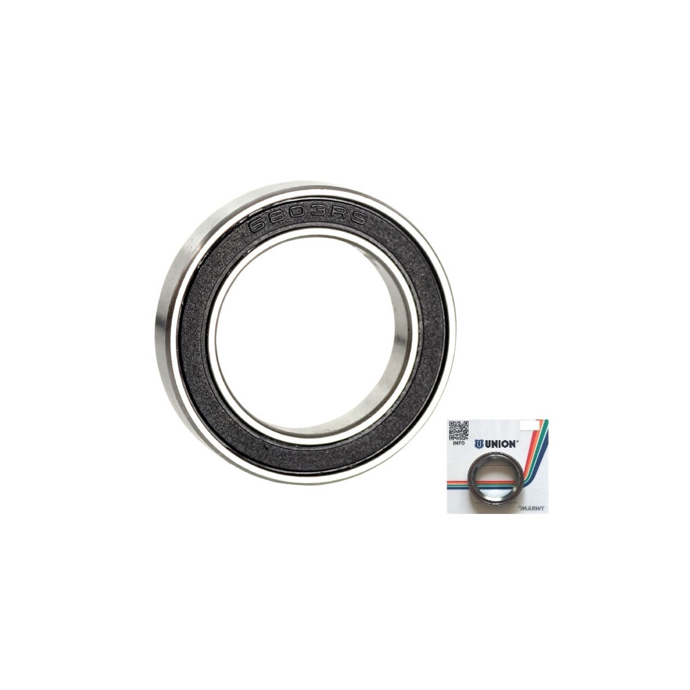 značka Union, Jednoradové guľkové ložisko vysokej kvality s jednoduchou konštrukciou. Je nerozoberateľné a bez plniaceho otvoru, po obidvoch vnútorných stranách oceľových krúžkov má hlboké obežné dráhy, takže dosahuje relatívne vysokú únosnosť a môže zachytávať radiálne i axiálne zaťaženia v obidvoch smeroch. Je vhodné aj pre vysoké frekvencie otáčania., kontaktné gumové tesnenie z obidvoch strán , vhodné pre prevádzkovú teplotu od -40 °C do +100 °C.
