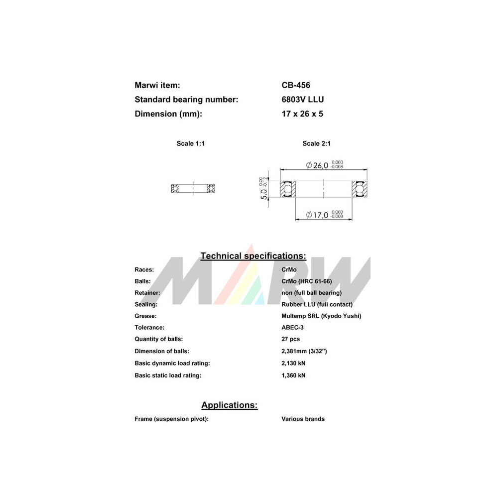 Ložisko CB-456 6803V LLL, 17x26x5 do náboja, ks