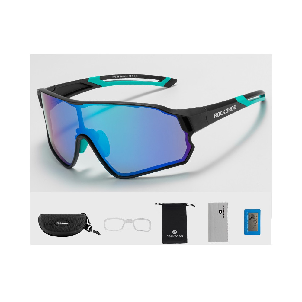 značka Rockbros, polarizačné sklo s iridíovou vrstvou, zjasňujú videnie, chránia od oslnenia, nepríjemných odrazov pri silnom slnku. Napríklad oslnená vozovka po daždi, s polykarbonátovým sklom s ochranou UV400, rámik vyrobený z TR materiálu, balenie obsahuje rámik pre dioptrické sklá, handričku z mikrovlákna, vrecko z mikrovlákna, tvrdé ochranné púzdro okuliarov. Hmotnosť 30 g.