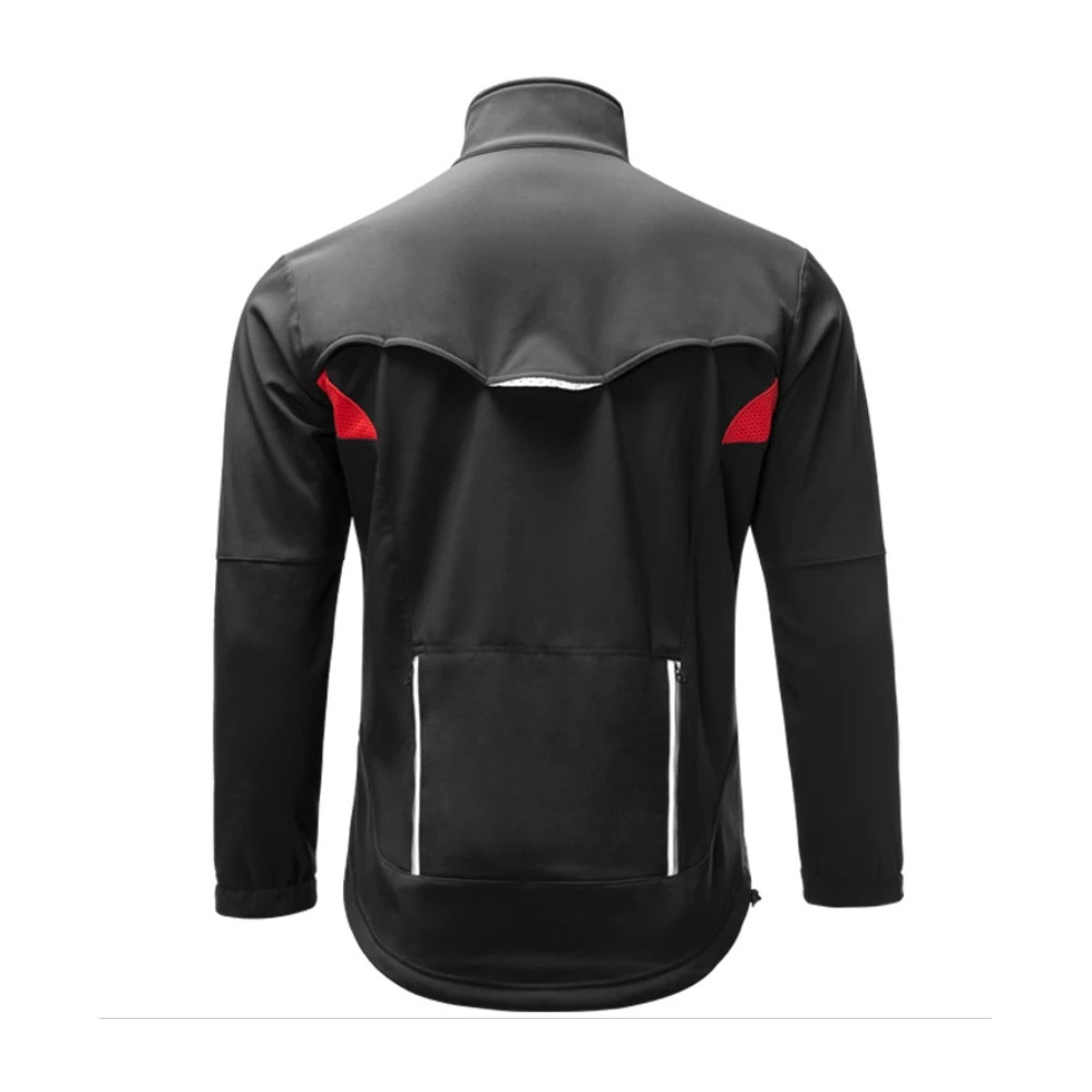Značka RockBros, bunda na bicykel, termo, vodeodolná, vetruvzdorná. Dobrá viditeľnosť vďaka reflexným prvkom, elastická, softshellová bunda. Bunda sa skladá z 85% polyesteru + 15% elastanu, vo vnútri z mäkkého, teplého polárfleecu, zvonku z materiálu odolného proti vetru a vode. Vďaka tomu ju môžete nosiť aj pri ľahkom daždi. Bunda má ventilačný systém na zadnej strane a na predných ramenách, aby odvádzala prebytočné teplo. Bunda má k dispozícii celkom 6 vreciek. 2 predné vrecká na zips, 2 otvorené vnútorné vrecká , 1 náprsné vrecko na zips a 1 zadné vrecko s 2 zipsami. Vrecká ponúkajú dostatok miesta pre malé predmety. Dvojité vrecko na zips v zadnej časti bundy je vhodné pre uloženie cenností, ako sú mobilné telefóny a peňaženky. Vetruodolný vysoký golier, elastické manžety s funkciou krátkych rukavíc a predĺžený lem s elastickou gumou na prispôsobenie spodnej časti, YKK zips. Softshellová bunda sa hodí pre jazdu na bicykli, beh, lezenie, turistiku, na jeseň aj na zimu a možno ju použiť aj ako vetrovku pre každodenné použitie.