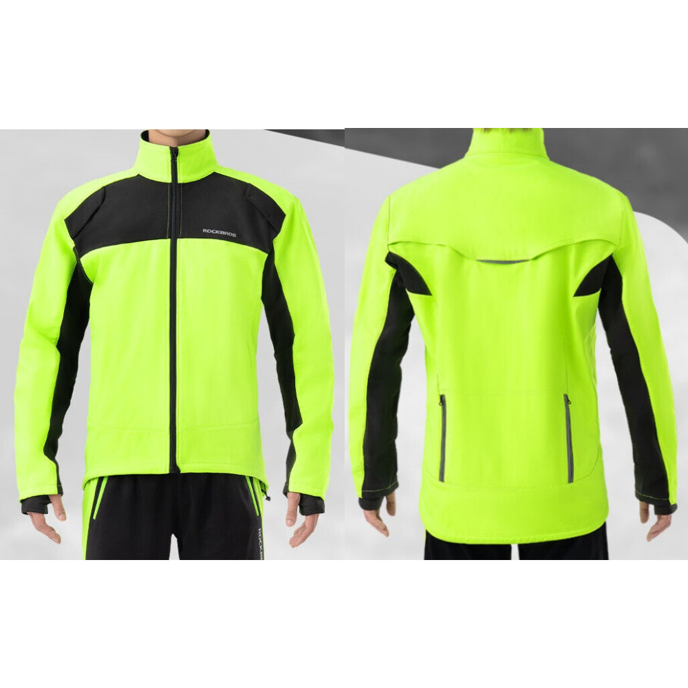 Značka RockBros, bunda na bicykel, termo, vodeodolná, vetruvzdorná. Vysoká viditeľnosť aj vďaka reflexným prvkom, elastická, softshellová bunda. Bunda sa skladá z 94% polyesteru + 6% elastanu, vo vnútri z mäkkého, teplého polárfleecu, zvonku z materiálu odolného proti vetru a vode. Vďaka tomu ju môžete nosiť aj pri ľahkom daždi. Bunda má ventilačný systém na zadnej strane a na predných ramenách, aby odvádzala prebytočné teplo. Bunda má 2 predné vrecká na zips, 2 otvorené vnútorné vrecká a 1 zadné vrecko s 2 zipsami. Vrecká ponúkajú dostatok miesta pre malé predmety. Dvojité vrecko na zips v zadnej časti bundy je vhodné pre uloženie cenností, ako sú mobilné telefóny a peňaženky. Vetruodolný vysoký golier, elastické manžety s funkciou krátkych rukavíc a predĺžený lem s elastickou gumou na prispôsobenie spodnej časti, YKK zips. Softshellová bunda sa hodí pre jazdu na bicykli, beh, lezenie, turistiku na jeseň aj v zime a možno ju použiť aj ako vetrovku pre každodenné použitie.