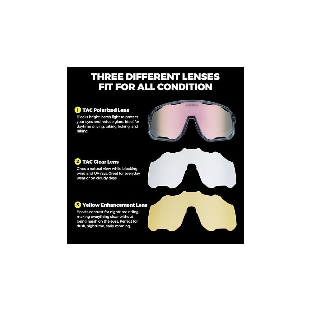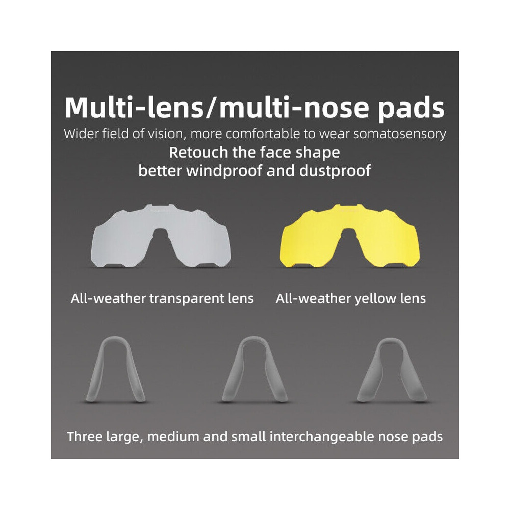 značka Rockbros, okuliare, polarizačné sklo s iridíovou vrstvou, ochrana UV400, zjasňujú videnie, chránia od oslnenia, nepríjemných odrazov pri silnom slnku. Napríklad oslnená vozovka po daždi. ochrana UV400, rámik vyrobený z TR materiálu, balenie obsahuje, handričku z mikrovlákna, vrecko z mikrovlákna, tvrdé ochranné púzdro okuliarov, náhradné nosníky v rôznych veľkostiach a 2 náhradné sklá, žlté, bezfarebné. Hmotnosť 25g