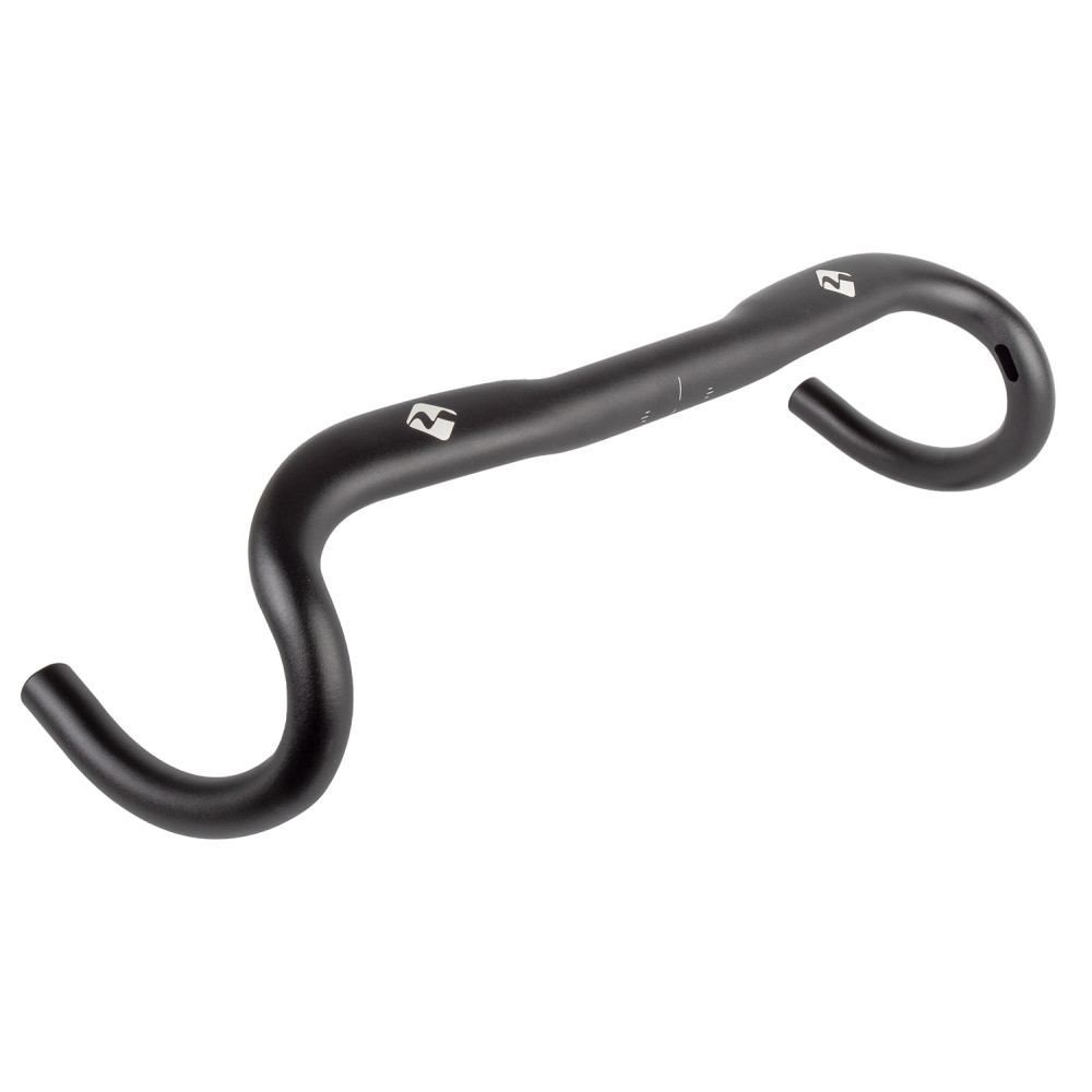 Značka M-wave, Nemecko, duralové, cestné aerodynamicky tvarované riadítka, šírka 440mm, farba matná čierna, so širokou ergonomickou opierkou rúk na hornej časti riadidiel, , s otvormi na vedenie radiacich a brzdových laniek vnútrom riadidiel. Vyrobené zo zliatiny hliníka Al-6066, vďaka čomu disponujú výbornou pevnosťou a pružnosťou. Pre predstavec 31,8 mm, drop 130mm, reach 65mm, flare 12°, váha 317g.