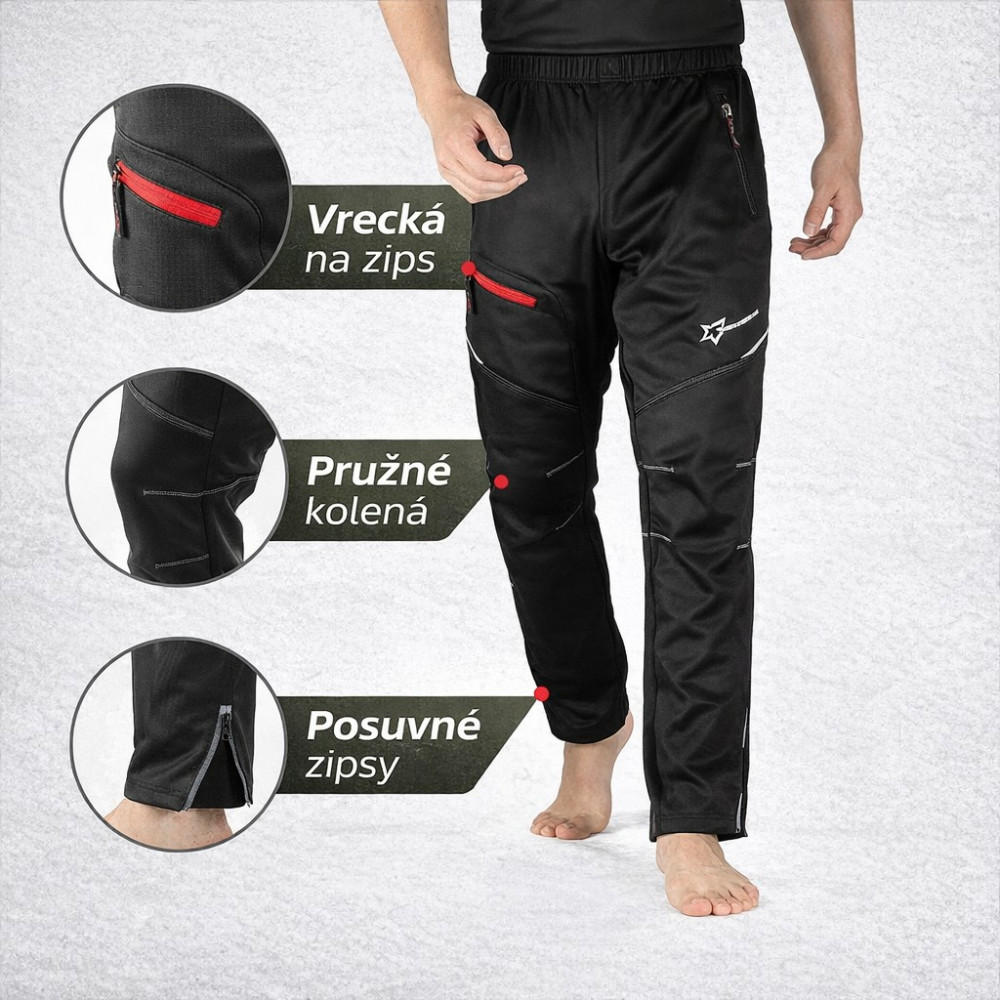 Značka RockBros, zimné cyklistické nohavice. Povrch je vodotesný, takže ho môžete nosiť pri mrholení. Nohavice sú vyrobené z polyesteru a sú aj vetruodolné. Nohavice majú k dispozícii 3 vrecká na zips. V spospodnej časti nohavíc je takisto zips uľahčujúci vyzliekanie nohavíc. Reflexná grafika zvyšuje bezpečnosť v noci. Materiál 80% Nylon, 20% Spandex. Poznámka: Veľkosti týchto nohavíc sú ázijské, ktoré sú menšie ako európske, obvykle o 1 číslo menšie. Vyberte si správnu veľkosť podľa tabuľky.
