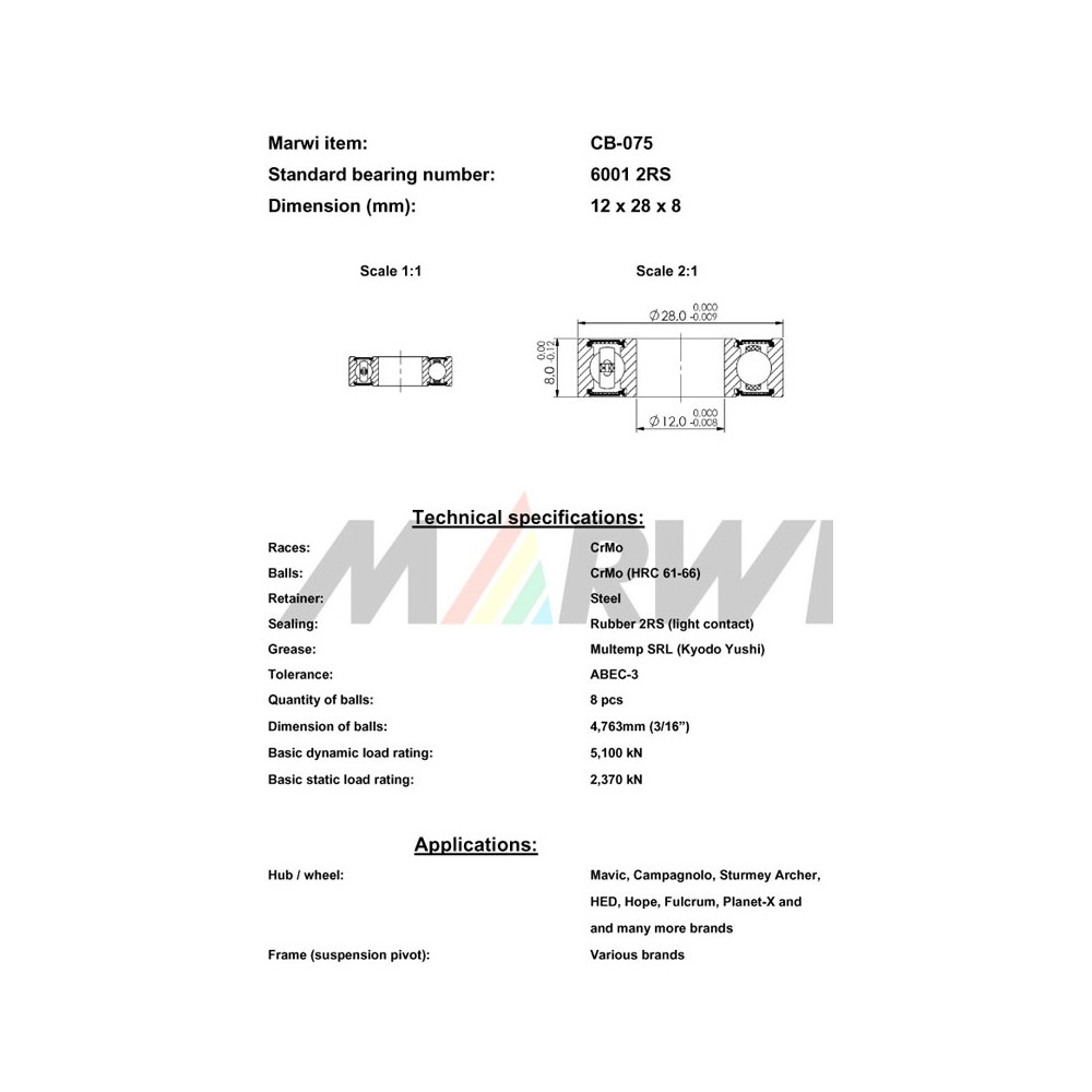 Ložisko CB-075 6001 2RS, 12x28x8 do náboja, ks