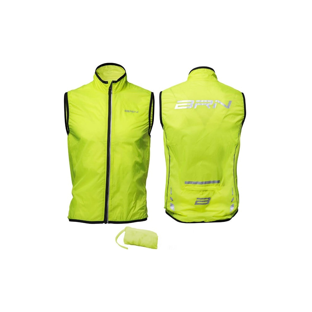 Značka BRN Taliansko, vesta odolná proti vetru, proti vode, priedyšná, ľahká. Je vyrobená zo 100% vetruodolnej tkaniny Ribstop Polyamide. Opatrená zipsom a zosilneným lemom pomocou gumičky. Na zadnej strane je pohodlné a praktické zadné vrecko, do ktorého je možné zložiť aj samotnú vestu. Reflexná grafika zvyšuje viditeľnosť za znížených svetelných podmienok. Farba: fluorescentná žltá. Unisex – vhodná pre mužov aj ženy. Hmotnosť cca 90g. Veľkosť 2XL.