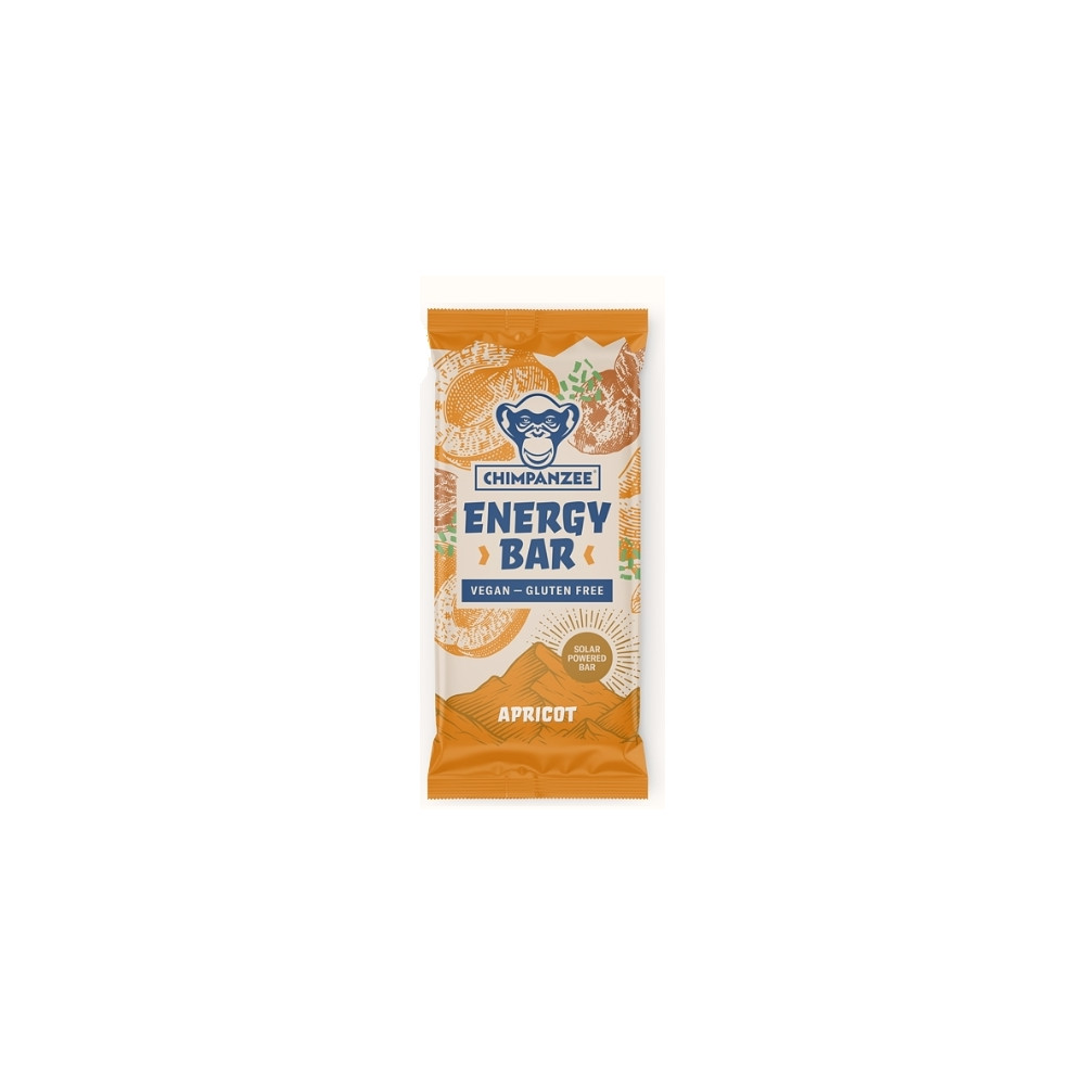 Čisto prírodná energetická tyčinka. CHIMPANZEE Energy Bar je chutným a vhodným zdrojom energie pre všetky druhy aktivít. Zastúpenie základných živín (sacharidy 27 g, bielkoviny 9 g, tuky 7 g, vláknina 6 g) je v ideálnom pomere pre potreby organizmu pri fyzickej aktivite. Vhodné pre vegánov a neobsahuje lepok. Zloženie: datľový a ryžový sirup, marhule 20%, sójová múka, ovsené vločky bezlepkové, cukor, kešu, pražené sójové bôby, proso, kukuričná múka, ryžová múka, zvlhčujúca látka: glycerol, repkový. Hmotnosť 55g.