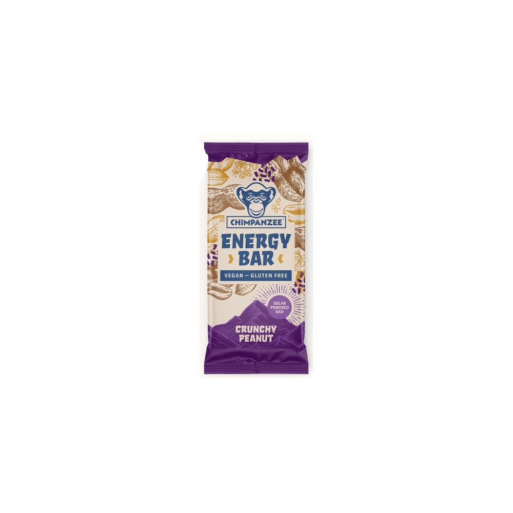 Čisto prírodná energetická tyčinka. CHIMPANZEE Energy Bar je chutným a vhodným zdrojom energie pre všetky druhy aktivít. Zastúpenie základných živín (sacharidy 27 g, bielkoviny 9 g, tuky 7 g, vláknina 6 g) je v ideálnom pomere pre potreby organizmu pri fyzickej aktivite. Vhodné pre vegánov. Zloženie : ryžový sirup, arašidy 25 %, ovsené vločky bezlepkové, sójová múka, cukor, pražené sójové bôby, prosová múka, kukuričná múka, ryžová múka, zvlhčujúca látka: glycerol; jablčná vláknina, repkový olej, soľ, kešu. Hmotnosť 55g.