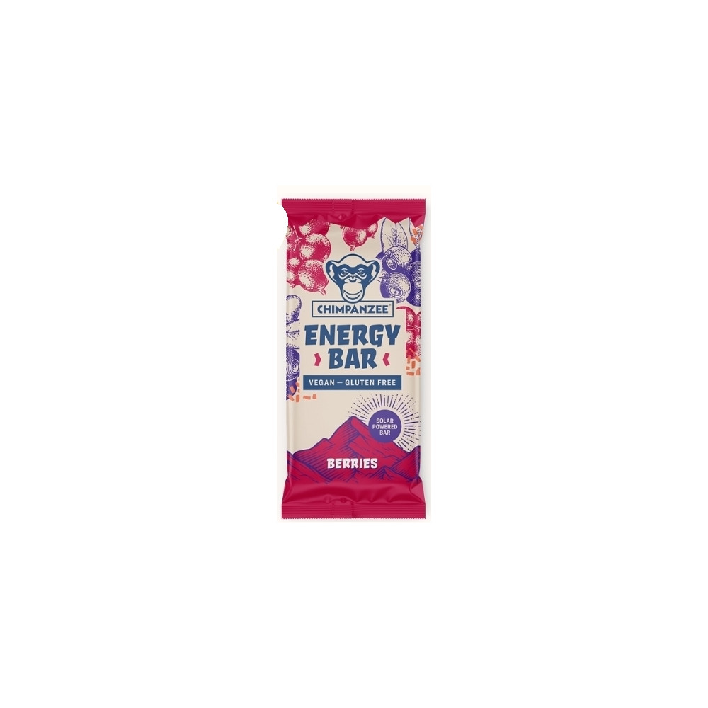 Čisto prírodná energetická tyčinka. CHIMPANZEE Energy Bar je chutným a vhodným zdrojom energie pre všetky druhy aktivít. Zastúpenie základných živín (sacharidy 27 g, bielkoviny 9 g, tuky 7 g, vláknina 6 g) je v ideálnom pomere pre potreby organizmu pri fyzickej aktivite. Vhodné pre vegánov a neobsahuje lepok. Zloženie: datľový a ryžový sirup, sójová múka, ovsené vločky bezlepkové, pražené sójové bôby, kešu, cukor, zvlhčujúca látka: glycerol, proso, kukuričná múka, ryžová múka, repkový olej, ríbezľový koncentrát 1,3% , čučoriedkový koncentrát 1,1% , citrónový koncentrát, prírodná aróma, soľ. Hmotnosť 55g.