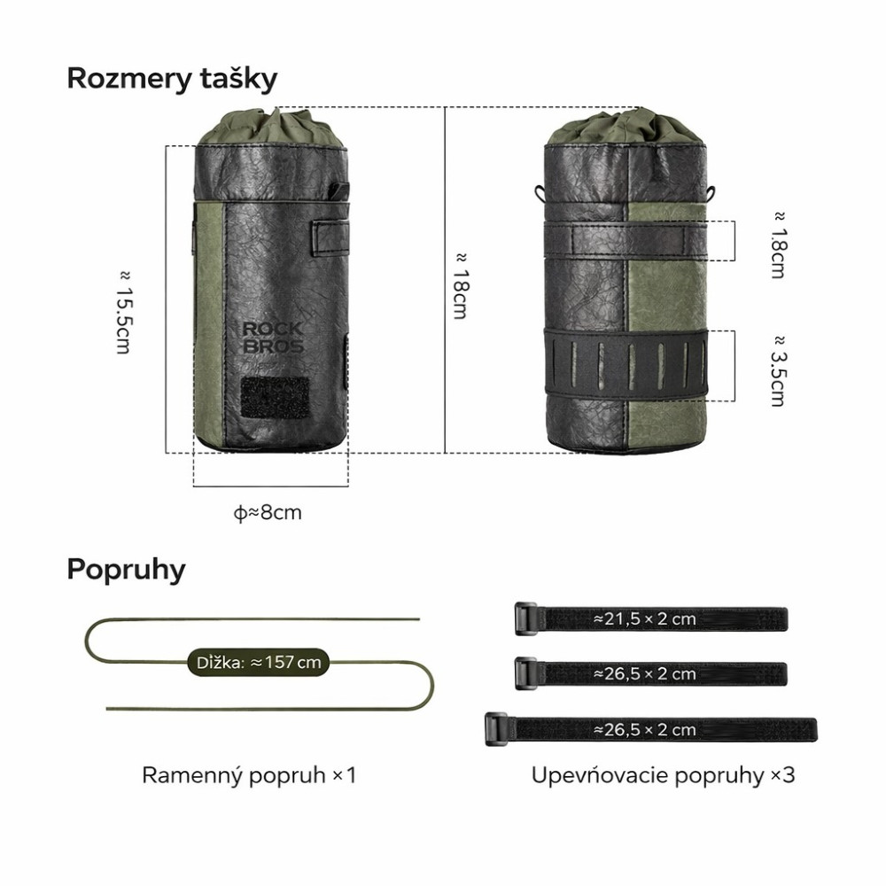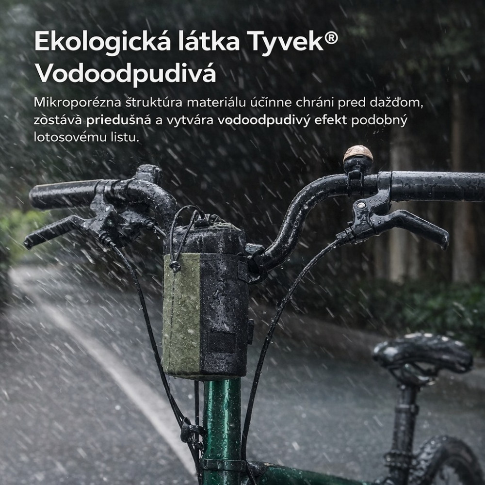 Značka RockBros, cyklistická taška na riadidlá 0,7L s popruhom na rameno, ultraľahká a vodeodolná – 2-v-1 taška cez rameno a na bicykel. Táto taška na riadidlá je vyrobená z inovatívneho materiálu DuPont Tyvek s jedinečným povrchom podobným papieru. Je mimoriadne ľahká, odolná voči roztrhnutiu, priedušná a vodoodpudivá. Moderný vzhľad spája funkčnosť s dizajnom – ideálna pre štýlových cyklistov, ktorí dbajú na udržateľnosť a kvalitu. Hlavné vrecko je uzatvárateľné zdrhovadlom na šnúrke. Taška sa dá použiť ako držiak na fľašu s vodou, alebo ako taška na smartfón, powerbanku, kľúče, peňaženku, náradie a ďalšie drobnosti. Perfektne navrhnutá pre dochádzajúcich a mestských cyklistov na krátke vzdialenosti a každodenné použitie. Nastaviteľné suché zipsy umožňujú pevné uchytenie na riadidlách, a to aj na nerovnom teréne – bez potreby náradia. Súčasťou je aj popruh na rameno s dĺžkou 160 cm na jednoduchú zmenu z tašky na riadidlá na tašku cez rameno. Predná strana má suchý zips na individuálne ozdobenie obľúbenými nášivkami. Táto cyklistická taška je skvelým doplnkom pre cestné bicykle, mestské bicykle, elektrobicykle, skladacie bicykle. Tvoj kompaktný spoločník na každý deň aj do prírody – ľahká, odolná a vždy pripravená na použitie. Ideálna na dochádzanie, výlety, šport a voľnočasové jazdy. Objem cca 0,7litra, hmotnosť cca 56gramov