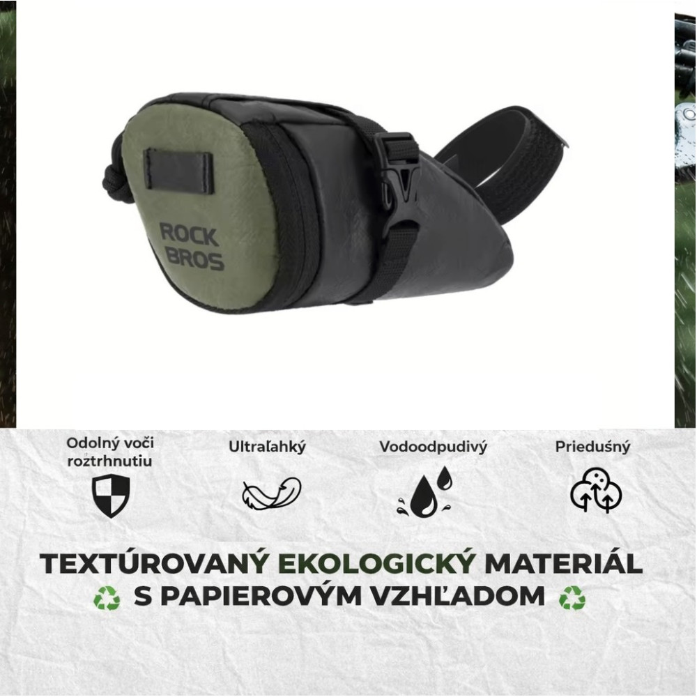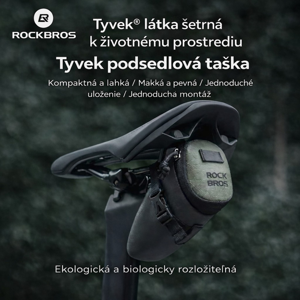 Značka RockBros, cyklistická taška pod sedlo 0,2L , ultraľahká a vodeodolná. Táto taška je vyrobená z inovatívneho materiálu DuPont Tyvek s jedinečným povrchom podobným papieru. Je mimoriadne ľahká, odolná voči roztrhnutiu, priedušná a vodoodpudivá. Moderný vzhľad spája funkčnosť s dizajnom – ideálna pre štýlových cyklistov, ktorí dbajú na udržateľnosť a kvalitu. Hlavné vrecko so zipsom ponúka dostatok miesta na náhradnú dušu, náradie a ďalšie drobnosti. Nastaviteľné suché zipsy umožňujú pevné uchytenie na lyžiny sedla, a to aj na nerovnom teréne – bez potreby náradia. Táto cyklistická taška je skvelým doplnkom pre cestné bicykle, mestské bicykle, horské bicykle, elektrobicykle, skladacie bicykle. Tvoj kompaktný spoločník na každý deň aj do prírody – ľahká, odolná a vždy pripravená na použitie. Ideálna na dochádzanie, výlety, šport a voľnočasové jazdy. Objem cca 0,2litra, hmotnosť cca 33gramov.
