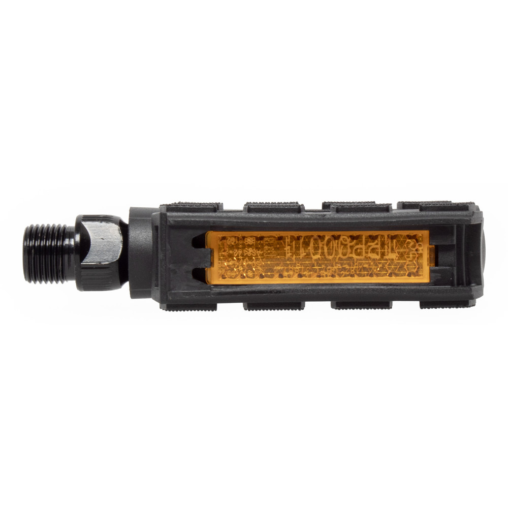 Pedál detský plast, oska CrMo 9/16, guličkový, čierny s odrazkami rozmer: 83 x 74 mm, hmotnosť : 240 g