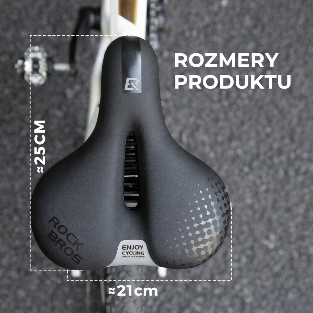 značka Rockbros, sedlo so zosilnenou penou, pohodlné, mäkké, ergonomické a vodotesné. Zosilnená pena s vysokou hustotou je mäkká a ponúka pri jazde dobrý komfort. Špeciálna štruktúra dutiny zvyšuje cirkuláciu vzduchu a odvádza vlhkosť a teplo, aby sa zabránilo nepríjemnému a dusnému poteniu. Na spodnej strane sedla sa nachádzajú 2 dvojvrstvové guľové tlmiče. V kombinácii s oblúkom sedadla, dobre absorbujú nárazy.