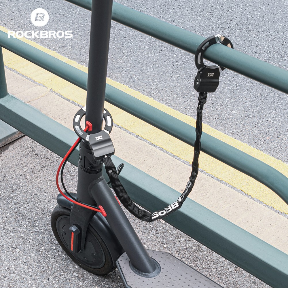 Značka RockBros, reťazový zámok s návlekom a so zosilnenou oceľovou reťazou, bezpečnostným systémom kľúčov. Jeho dĺžka 60 cm vám umožní ľahko zabezpečiť bicykel, alebo kolobežku. Vnútorný priemer oka zámku je cca 55 mm. Patentovaný systém uchytenia reťaze a veľké oká sú potiahnuté TPR plastickou hmotou - čo zaručuje ochranu proti otlčeniu rámu bicykla. Dodáva sa s 2 kľúčmi. Hmotnosť cca 700 g.
