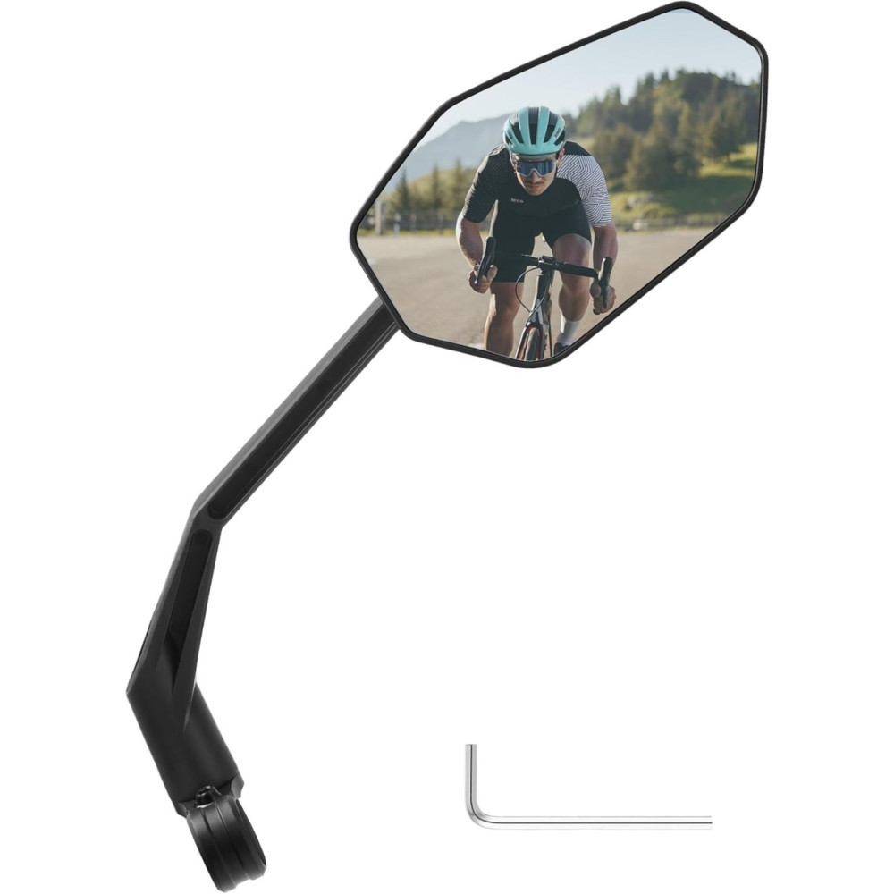 Značka RockBros, pravé spätné zrkadlo. OSTRÝ HD OBRAZ. Modrá konvexná šošovka z odolného materiálu s antireflexnou vrstvou poskytuje rozšírené zorné pole a znižuje rušivé svetelné odlesky. Vďaka tomu máte vždy jasný prehľad o premávke za vami. PLNÝ VÝHĽAD. Zrkadlo je možné otáčať do všetkých smerov. Uhol pohľadu si tak prispôsobíte svojej polohe – či už sedíte vzpriamene v meste alebo ste predklonení počas jazdy na cestnom bicykli. Veľké zorné pole eliminuje mŕtve uhly a zvyšuje bezpečnosť pri zmene jazdného pruhu aj v zákrutách. ROBUSTNÉ A STABILNÉ NA VŠETKY CESTY. Vysokopevnostné chrómované sklo s nárazuvzdornou, nastaviteľnou základňou a klik upevnením. Drží pevne a bez vibrácií aj pri otrasoch, pre dlhodobo jasný výhľad. ŠIROKÁ KOMPATIBILITA. Vhodné pre všetky riadidlá (O 20–23 mm). Ideálne pre horské bicykle, cestné bicykle, mestské / trekingové bicykle, ako aj kolobežky a e-kolobežky. MIMORIADNE JEDNODUCHÁ MONTÁŽ. S priloženým imbusovým kľúčom nainštalujete v 3 krokoch: uvoľniť, nasadiť, utiahnuť. Okamžite pripravené na použitie.