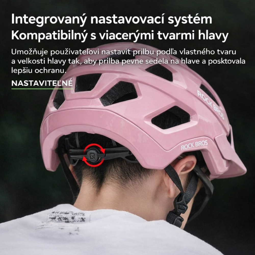 značka Rockbros, prilba pre mládež, veľ. M 54-58cm, hmotnosť 270 g, ružová , 17 veľkých otvorov na prilbe, DOUBLE IN-MOULDové prevedenie s nastaviteľným bielym šiltom. Vypchávky sú vyrobené s prímesou nano striebra – eliminuje baktérie a zápach. Prilba má na zadnej časti miesto pre osadenie magnetického zadného svetla RockBros 81801071. UPOZORNENIE:Prilby nevystavujte teplotám nad 60 stupňov, lebo môže dôjsť k deformácii ! ! !