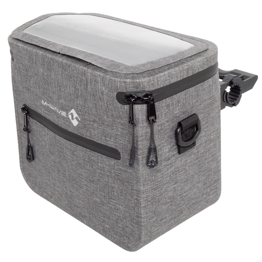 značka M-Wave Nemecko, moderná a funkčná taška na riadidlá je ideálnym riešením pre každodenné jazdy aj dlhšie výlety. Vďaka premyslenému dizajnu ponúka dostatok priestoru, jednoduché upevnenie a pohodlný prístup k tvojim veciam počas jazdy. Zvárané švy - 100% vodotesná. Rýchloupínací systém na riadidlá. Jednoduché nasadenie a odobratie tašky jedným kliknutím. Odnímateľný ramenný popruh. Tašku môžeš pohodlne nosiť aj mimo bicykla. Priehľadné naklápateľné vrecko na mobil. Ideálne na navigáciu – ovládanie dotykom bez vyberania telefónu. Extrémne odolný materiál, veľký úložný priestor na zips, vonkajšie a vnútorné vrecko na zips, priehradka na mobilné zariadenia s priehľadným okienkom pre dotykové displeje, clip úchyt na riadidlá a predstavec 22,2 mm - 31,8 mm. Rozmery: výška 28 cm, šírka 13 cm, dĺžka 25 cm, objem cca 9 litrov.